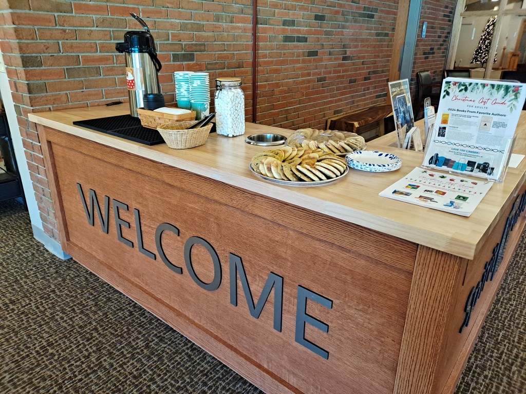 In the lobby, drinks and snacks are still available. Our members like to use this time for fellowship, and, if you would like, we would love to get to know you better.
